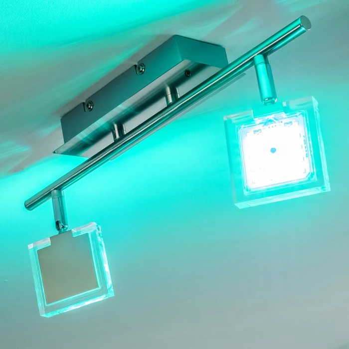 Zusätzlich sind die einzelnen Spots beliebig dreh- und schwenkbar.