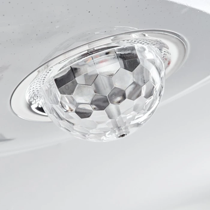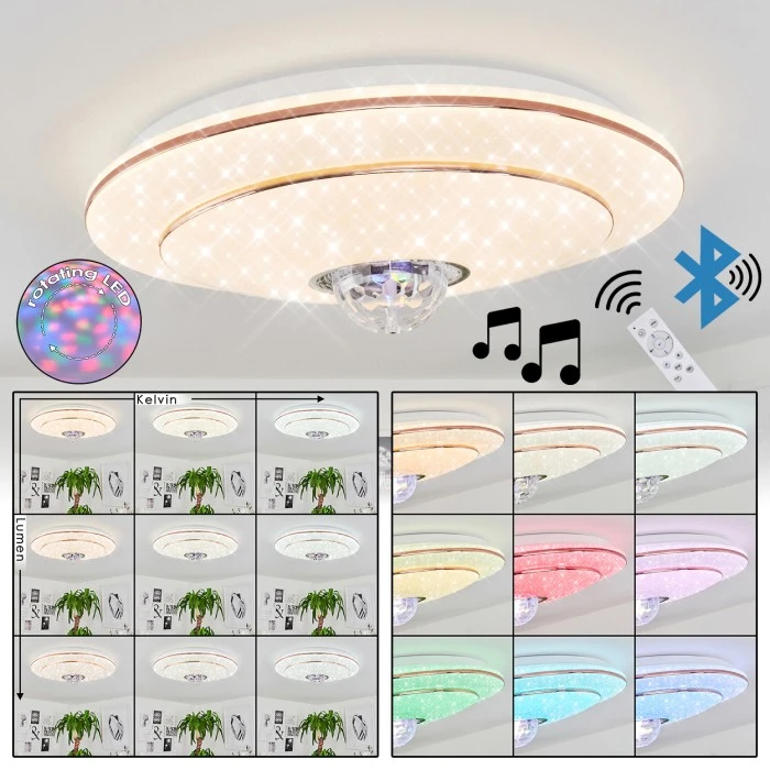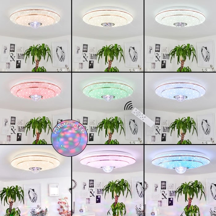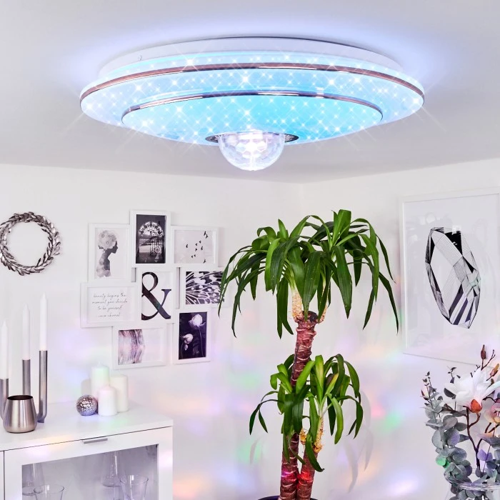 Mit schönen Farbeffekten an der Decke und im Raum.