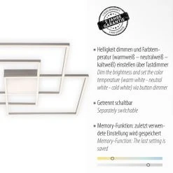 Leuchten Direkt ASMIN Deckenleuchte LED Stahl gebürstet, 3-flammig, Fernbedienung